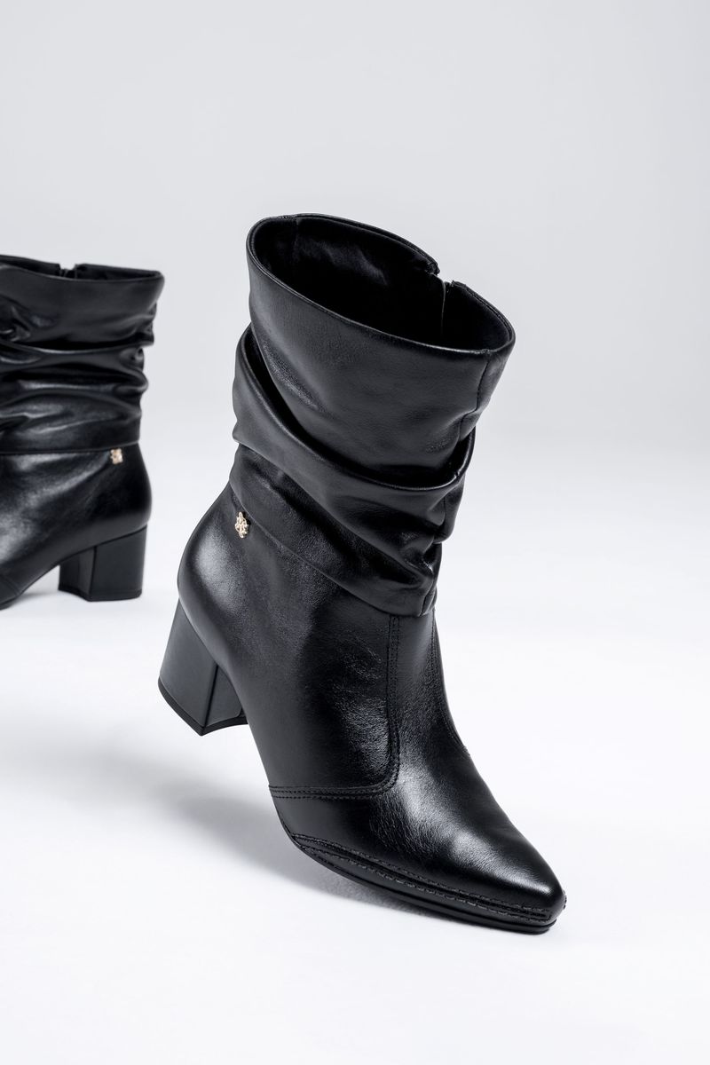 A bota feminina em couro é a combinação ideal de estilo, conforto e durabilidade para todas as ocasiões. Características: • Confeccionada em couro legítimo, garantindo resistência, maciez e acabamento premium. • Tecnologia Total Confort, que integra inovação e máximo conforto em um único calçado. • Salto bloco médio, que oferece estabilidade e conforto para caminhar por longos períodos. • Cano curto, proporcionando ótimo ajuste, proteção e charme ao visual. • Palmilha macia e solado resistente, ideais para uso diário. • Fechamento lateral em zíper, garantindo praticidade e calce fácil.