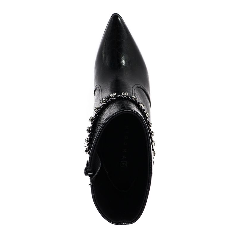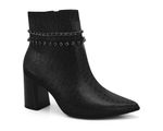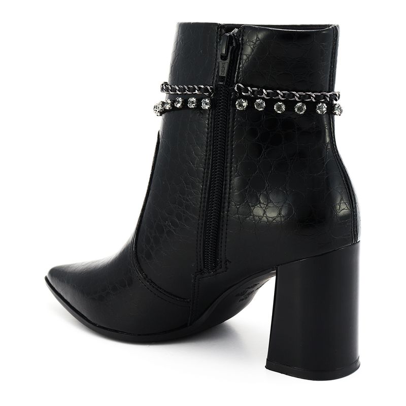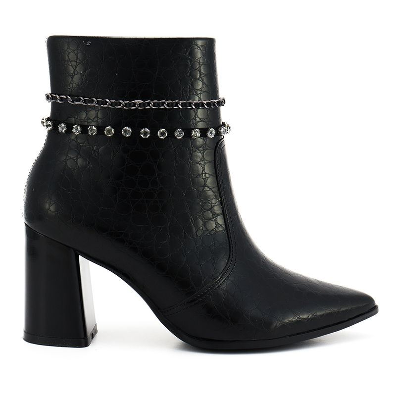 Você está procurando um calçado que combine elegância, conforto e estilo? Então você vai adorar a nossa bota de salto alto preta, feita com couro sintético texturizado de alta qualidade e enfeitada com uma corrente de metal charmosa. Essa bota é perfeita para ocasiões especiais ou para dar um toque de sofisticação ao seu look casual. Com um design pontiagudo e um salto robusto, essa bota vai realçar a sua silhueta e fazer você se sentir confiante e chique. Não perca essa oportunidade de ter um calçado versátil e luxuoso no seu guarda-roupa!