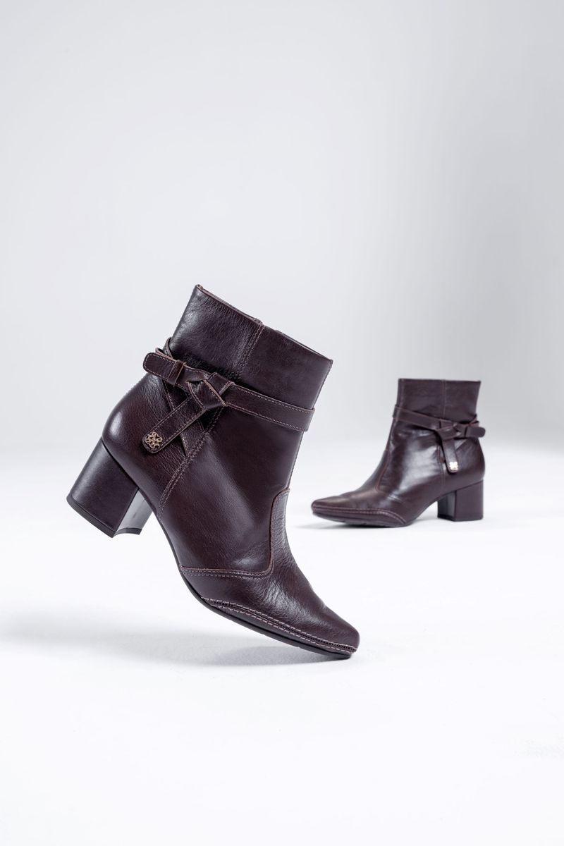 A bota feminina em couro é a combinação ideal de estilo, conforto e durabilidade para todas as ocasiões. Características: • Confeccionada em couro legítimo, garantindo resistência, maciez e acabamento premium. • Tecnologia Total Confort, que integra inovação e máximo conforto em um único calçado. • Salto bloco médio, que oferece estabilidade e conforto para caminhar por longos períodos. • Cano curto, proporcionando ótimo ajuste, proteção e charme ao visual. • Palmilha macia e solado resistente, ideais para uso diário. • Fechamento lateral em zíper, garantindo praticidade e calce fácil.