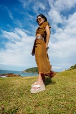 Chegue com estilo e conforto neste verão com o novo chinelo plataforma, um verdadeiro must-have da temporada! Com design moderno e sofisticado, ele traz salto Anabela que oferece estabilidade e elegância em cada passo. O aplique metálico dourado em formato orgânico adiciona um toque de glamour e exclusividade à peça, elevando qualquer look com charme.