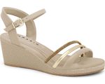 Eleve seu visual com a sandália anabela nude com tiras delicadas e detalhes dourados. Ideal para mulheres que buscam unir conforto e elegância, essa sandália traz um toque sofisticado e moderno para qualquer look. Com um salto anabela de altura média, proporciona estabilidade e conforto durante todo o dia, sem abrir mão do charme.
