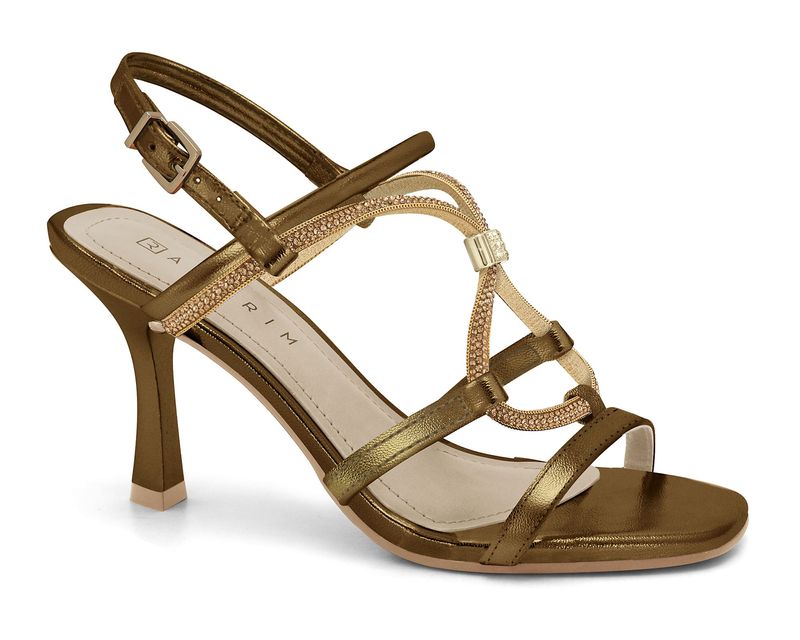 Sandália Metal Bronze com Tira Strass Salto Fino Ramarim 2426209-5