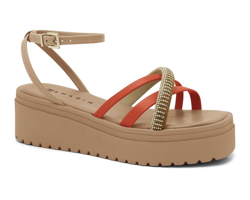 Sandália Plataforma Natural/Pitanga/Caqui Ramarim 2445204-1