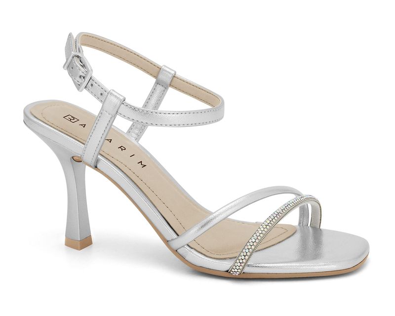 Sandália Prata Salto Fino com Strass Ramarim 2426208-1