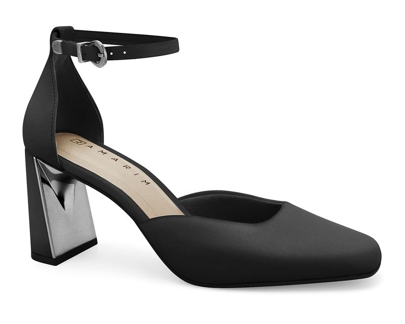 O salto geométrico é uma das grandes tendências entre as fashionistas! Com detalhes em metal, este modelo traz sofisticação e estilo para seus looks, oferecendo o equilíbrio perfeito entre glamour e conforto. Uma escolha certeira para quem deseja estar na moda sem abrir mão do bem-estar. Aposte e destaque-se com elegância!