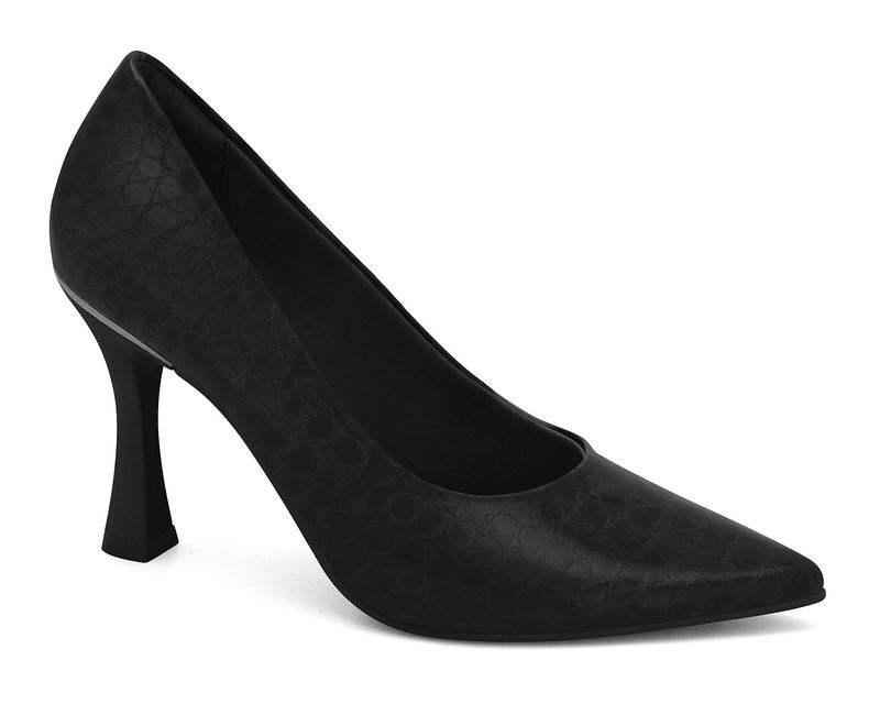Com um salto fino e alto de 9 cm, este scarpin preto oferece uma postura elegante e alonga a silhueta, acrescentando um toque de glamour a qualquer look. O bico fino reforça a aparência refinada do calçado, tornando-o uma peça versátil que pode ser combinada com diversas roupas, desde trajes formais até conjuntos mais descontraídos. Seu design atemporal permite que você esteja sempre na moda, independentemente da ocasião.