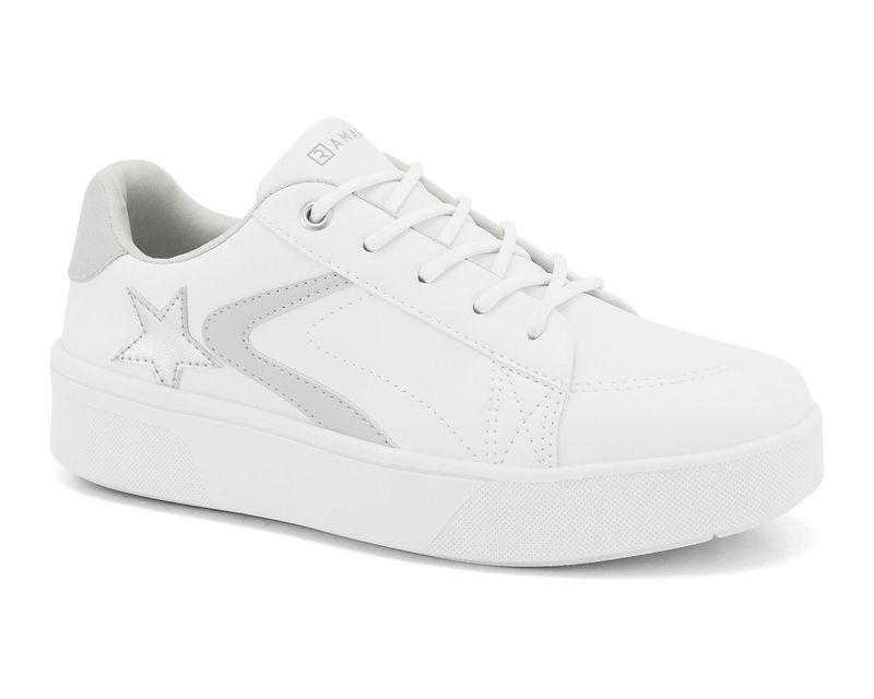TÊNISCASUALTênis Branco Feminino com Detalhes em Ice/Prata Ramarim 2483105-1