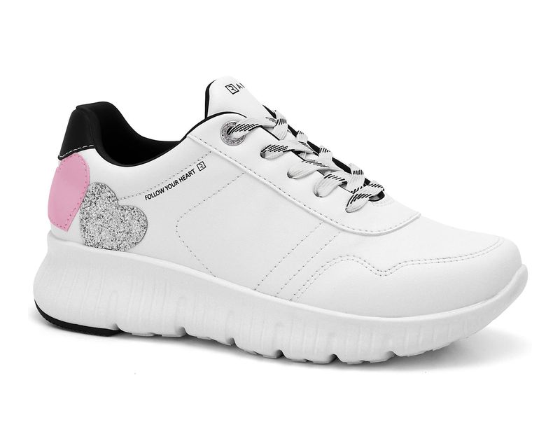 Tênis Feminino Branco/Gliter Prata/Blossom/Preto Heart Ramarim 2477202-1