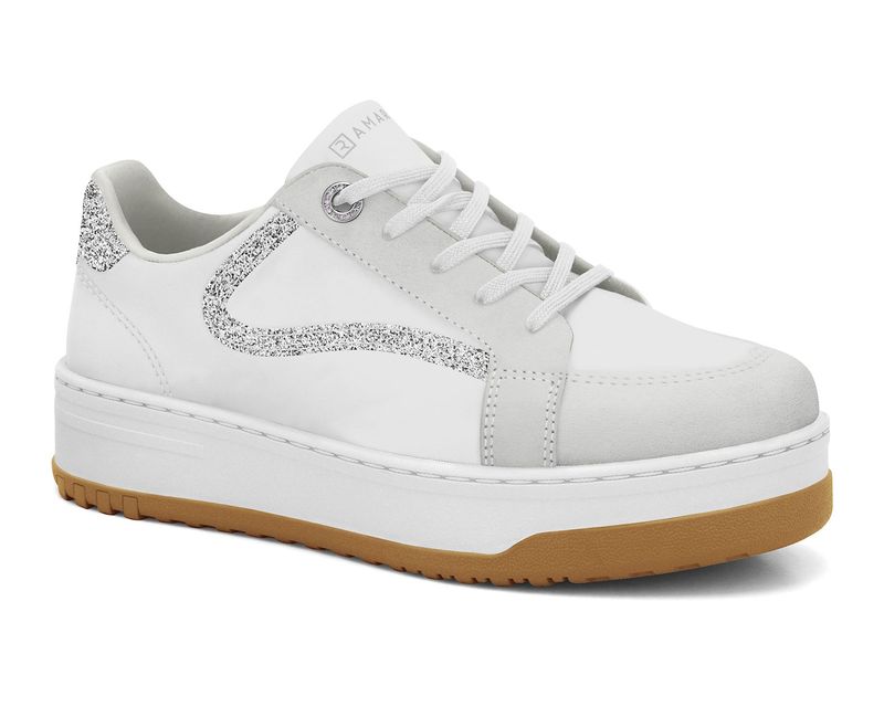 Tênis Feminino Camurça Branco/Prata Ramarim 2464204-2