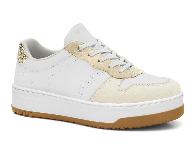 Tênis Feminino Camurça Coconut/Branco/Ouro Ramarim 2464201-4